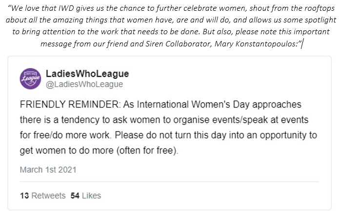 Bron: nieuwsbrief van SIREN, a Women in Sport Collective met Tweet van LadiesWhoLeague