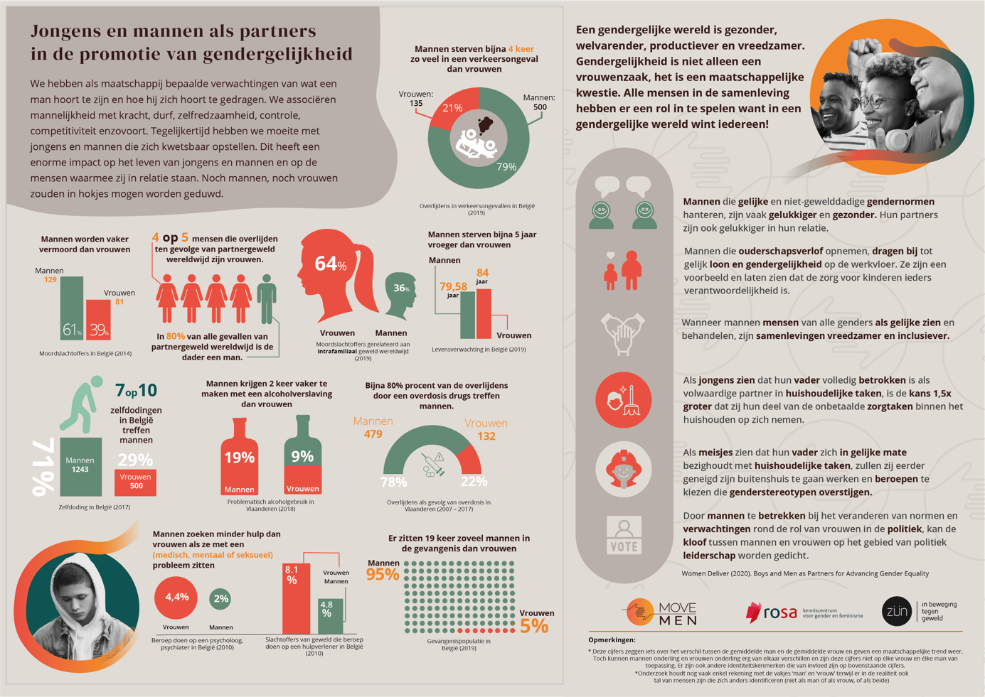 Van dit oogpunt werd MoveMen opgericht: een initiatief van RoSa vzw en vzw Zijn dat sensibiliseert en informeert over stereotypen en schadelijke opvattingen over mannelijkheid en hoe deze opvattingen in relatie staan tot gender(on)gelijkheid, relaties, discriminatie en privileges en geweld. Onder de noemer van MoveMen ontwikkelen we vormingen, stellen we informatie beschikbaar op de movemen.be website en brengen we Platform MoveMen samen. Platform MoveMen is de lokale Vlaamse afdeling van het internationale MenEngage Netwerk, waarbij professionals samenkomen die werken met jongens en mannen rond gendergelijkheid vanuit een feministische visie.