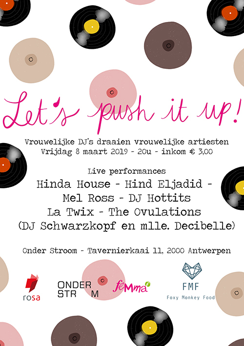 Naar aanleiding van Internationale Vrouwendag, organiseren RoSa vzw, Femma, Onder Stroom en Foxy Monkey Food op vrijdagavond samen met met heel wat artiesten ‘Let’s Push it Up’: een feest met enkel vrouwelijke muzikanten en dj’s. Dit gebeurt in navolging van RoSa’s oproep om meer vrouwelijke artiesten in 'De Tijdloze' van Studio Brussel te krijgen.