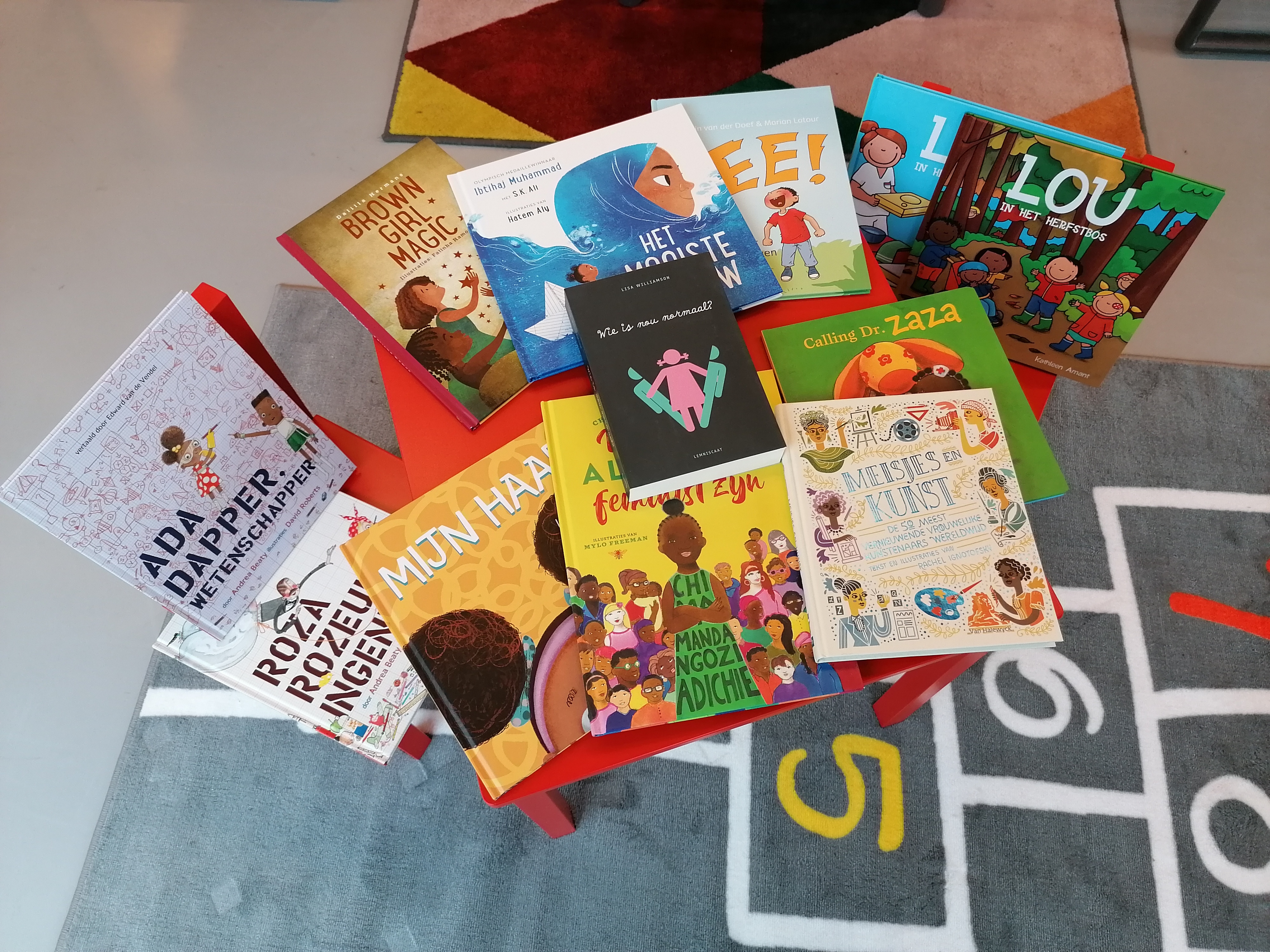 Last but not least: heuglijk nieuws! In december begonnen wij in de bib aan de voorbereiding van een mini-kinderhoek en bestelden we alvast wat genderbewuste en inclusieve jeugdliteratuur. Vanaf volgend jaar kunnen kinderen tekenen of onze gendersensitieve afbeeldingen inkleuren, en verschillende kinderboeken lezen. We houden de kinderboekencollectie bewust klein, maar zo zijn ook de allerkleinsten welkom bij ons. In de toiletten is er nu ook een luiertafel, zodat onze bezoekers hun dreumes van verse pamper kunnen voorzien.